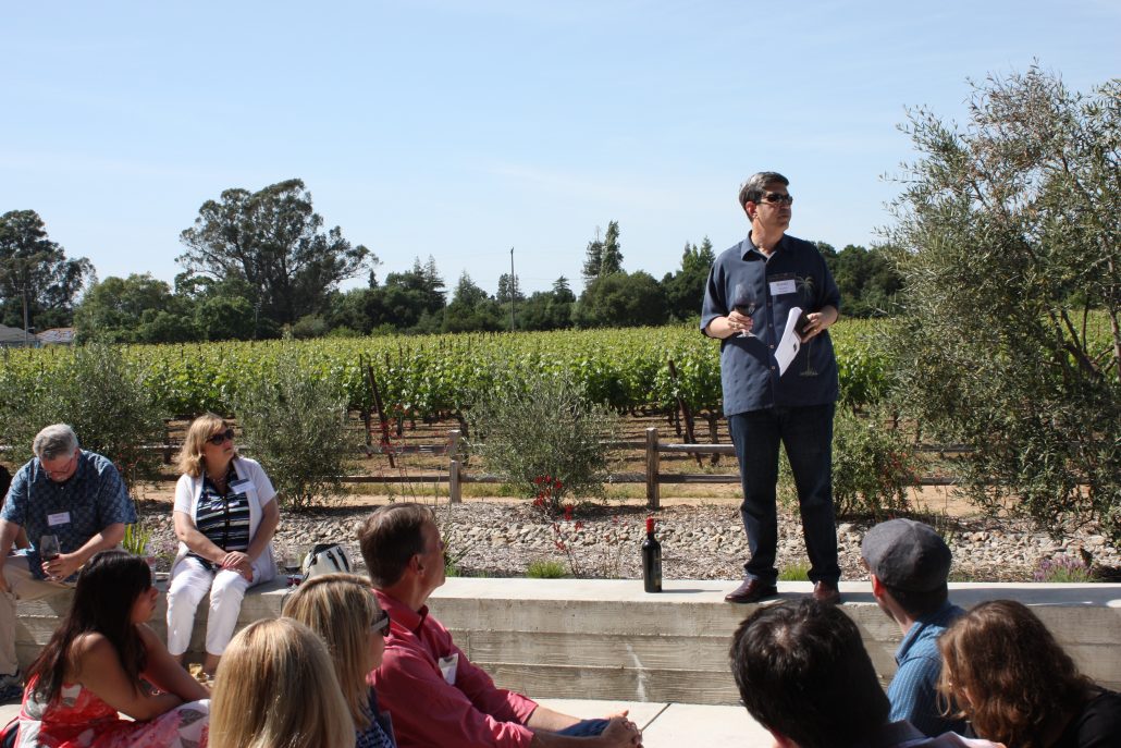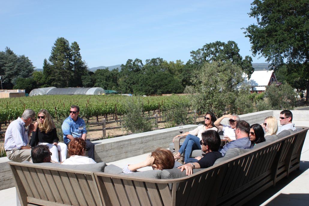 Guests had to put their “Game Faces” on. After an update in the foyer are, we split up into two groups – we challenged Club Members and guests to determine which photos were taken from our Dutton Ranch, Sonoma vineyard of our pinot noir vineyard, and which were taken from out Stagecoach Atlas Peak vineyard. Guests also had to guess what flavors were associated with each wine, and what grape type was associated with each wine they were tasting. We all gathered in the kitchen at the end of the day to exchange “results” and figure out which team did the best job of matching sight, smell and taste to the newly-released wines.